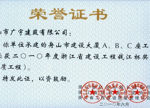 2010年錢江杯(舟山建設(shè)大廈C座)