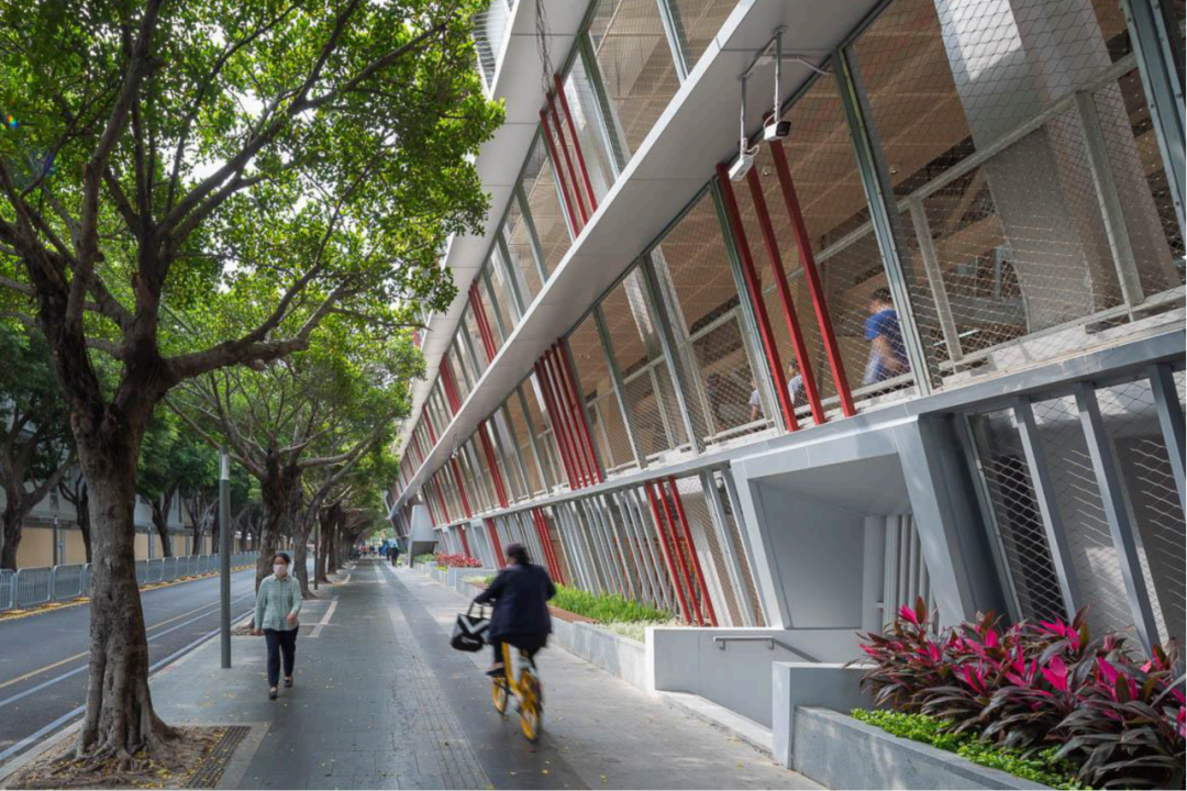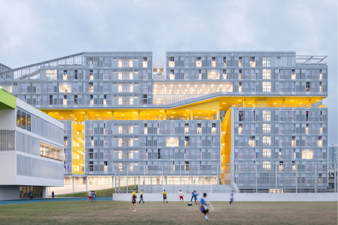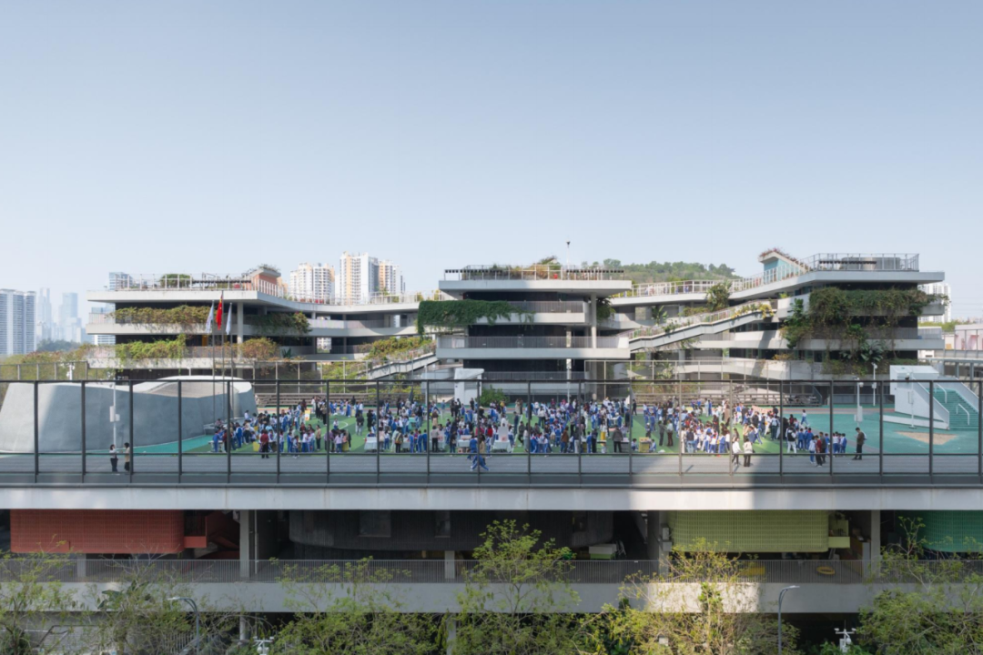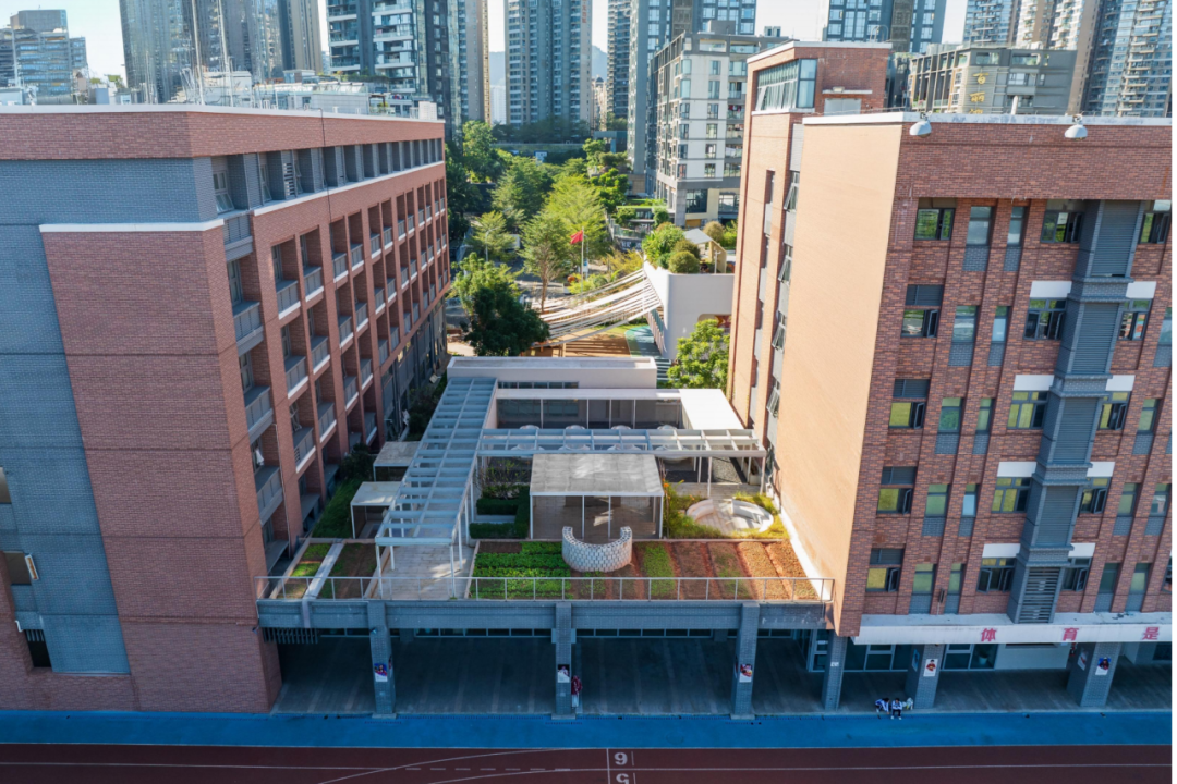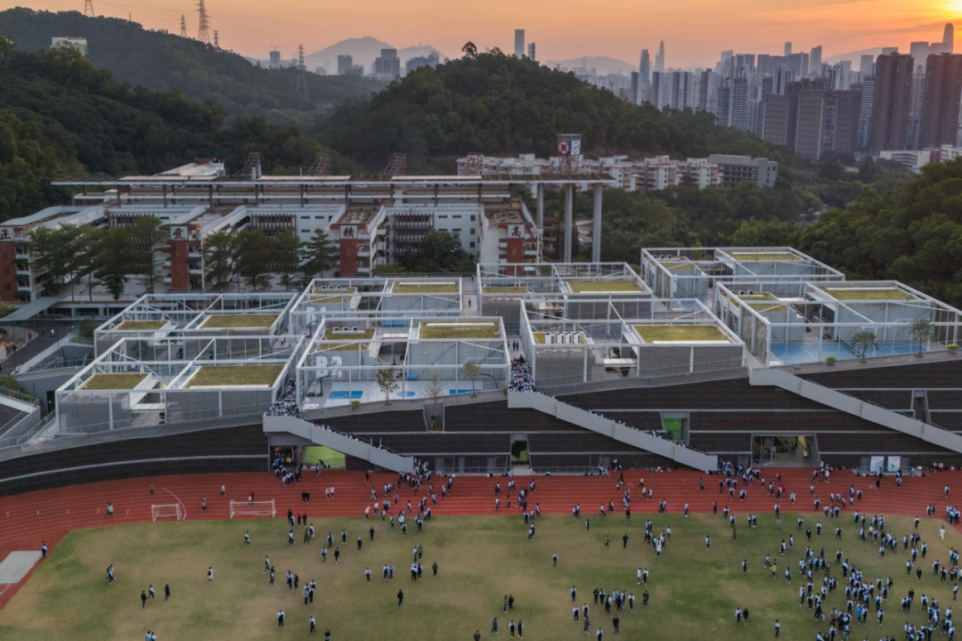 何健翔聚焦紅嶺實驗小學(xué)、紅嶺高中藝體中心與深圳美術(shù)學(xué)校三個項目,系統(tǒng)展示了高密度校園的解題思路。紅嶺實驗小學(xué)通過“雙復(fù)形”內(nèi)部庭院,在有限密度中編織出充滿活力的兒童社群空間;紅嶺高中藝體中心以“空間織造”策略回應(yīng)原始山體地形,實現(xiàn)建筑與自然肌理的有機(jī)縫合;深圳美術(shù)學(xué)校則以大膽的架空操場釋放地面空間,重構(gòu)了校園與城市的界面關(guān)系,為高密度城市中的校園建設(shè)提供了兼具在地性與前瞻性的解決方案。