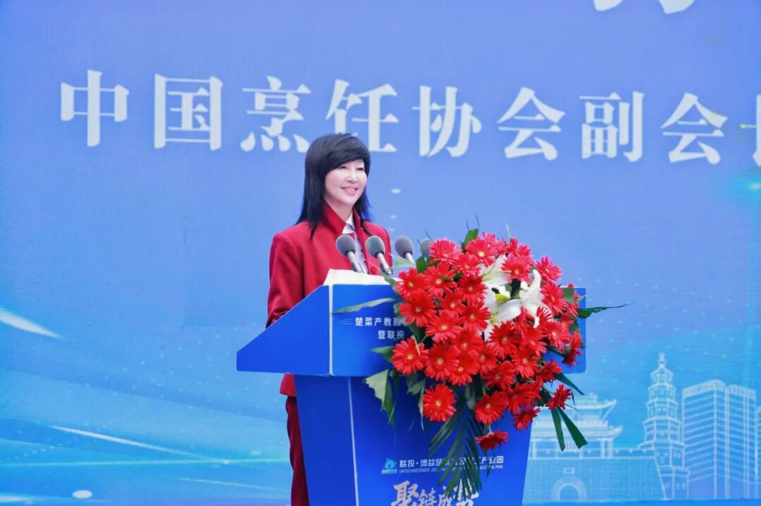 中國烹飪協(xié)會副會長、湖北省烹飪協(xié)會會長孫桃香代表協(xié)會對產(chǎn)業(yè)園的啟幕表示熱烈祝賀。她指出,這不僅是單個項(xiàng)目的落成,更是楚菜產(chǎn)業(yè)發(fā)展史上一個“具有里程碑意義的新起點(diǎn)”,標(biāo)志著楚菜產(chǎn)業(yè)化正式進(jìn)入“快車道”。通過現(xiàn)代食品加工技術(shù),楚菜正從依賴廚藝的“餐飲后廚”走向標(biāo)準(zhǔn)化、規(guī)?;摹肮I(yè)前臺”,打通走向更廣闊市場的“高速公路”。面向未來,她提出三點(diǎn)期望,一是堅持“標(biāo)準(zhǔn)與風(fēng)味并重”,二是推動“守正與創(chuàng)新結(jié)合”,三是促進(jìn)“品牌與文化同行”。孫桃香表示,中國烹飪協(xié)會與湖北省烹飪協(xié)會將持續(xù)支持產(chǎn)業(yè)園發(fā)展,整合資源、搭建平臺,助力楚菜飄香全國、享譽(yù)世界。
