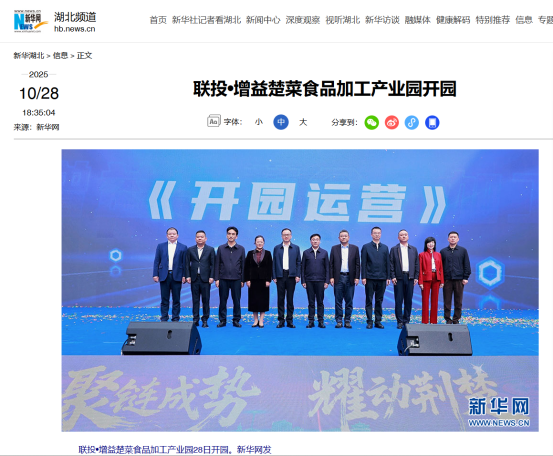 主流媒體聚焦報道:湖北聯(lián)投·增益楚菜食品加工產(chǎn)業(yè)園開園